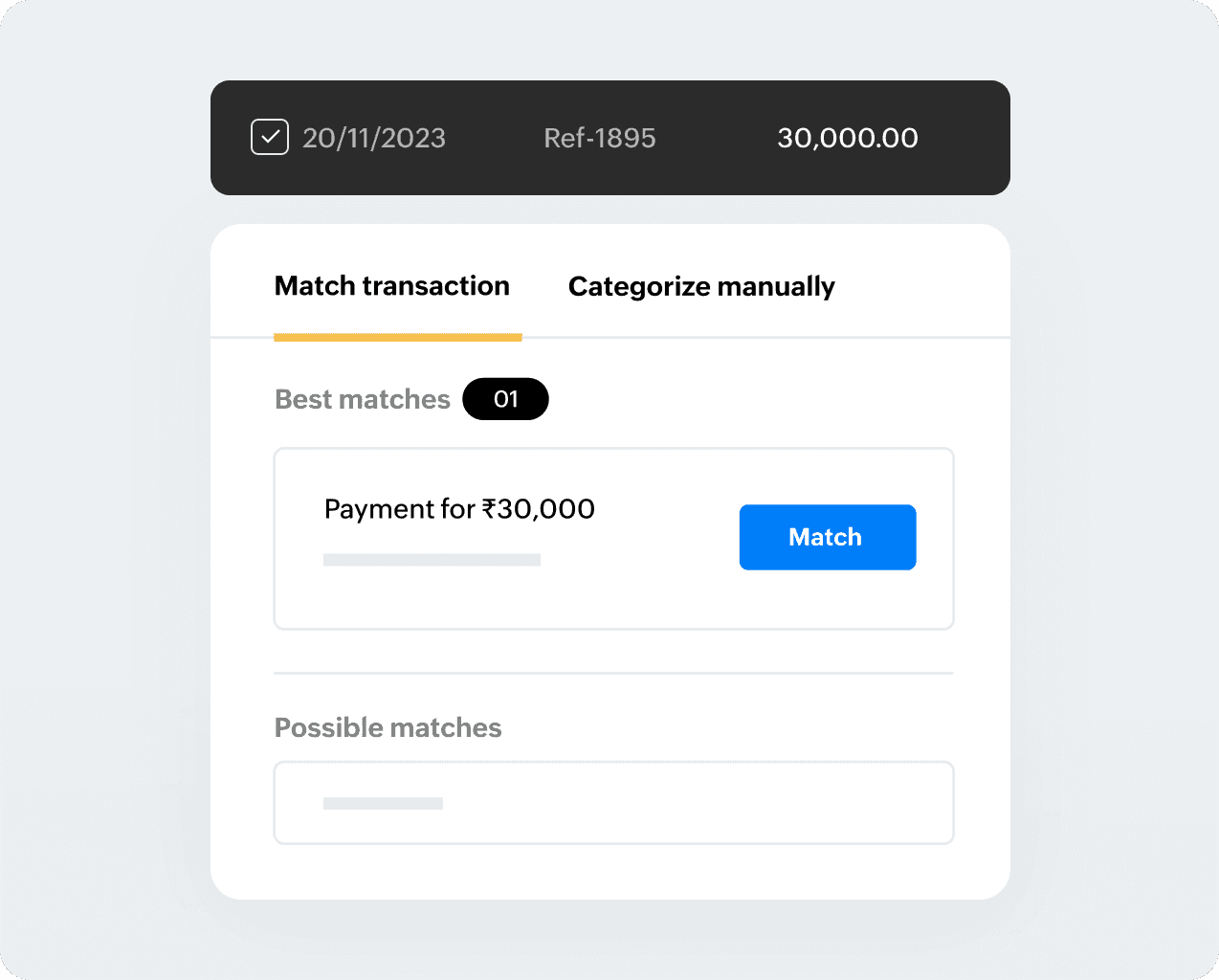 The banking module’s intelligent algorithm instantly fetches you the ‘best match’ and other ‘possible matches’ for every bank statement as available from your Zoho Books transactions, saving you valuable time
