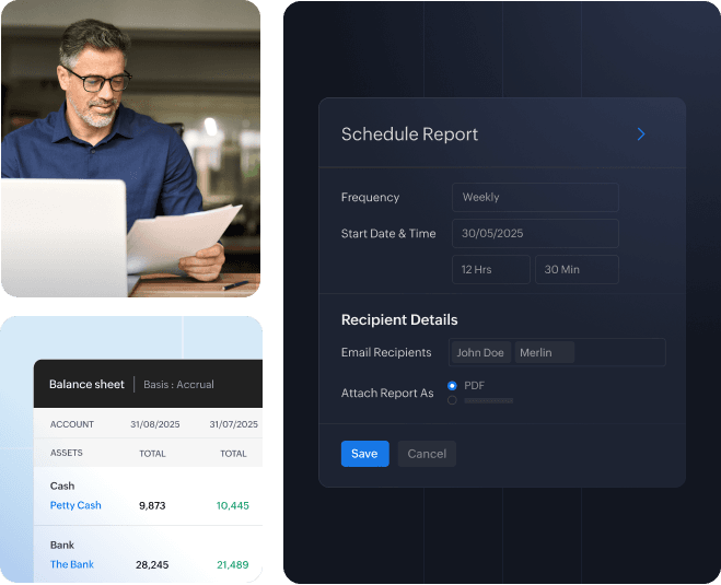 Grant secure access to Zoho Books reports by defining custom roles to share entire modules or specific reports. You may even invite investors, leadership, and other key stakeholders to view relevant reports directly rather than emailing them.