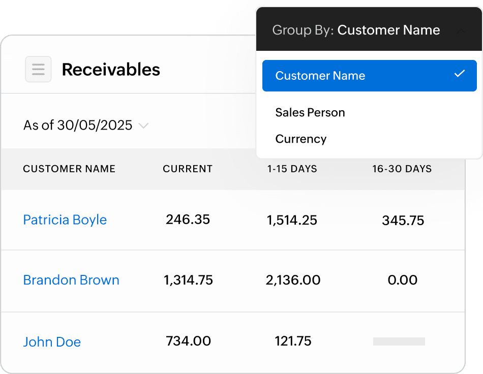 Gain real-time insights into your business health. Track receivables, payables, project performance, inventory levels, and tax obligations—all in one place. Zoho Books ensures you stay compliant with financial regulations.